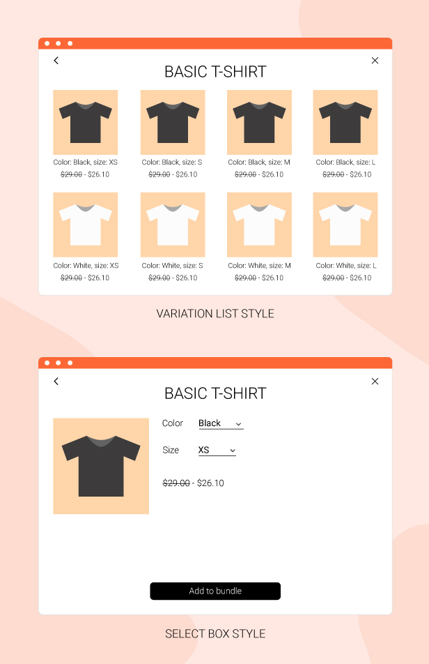 Choose between two variation display styles that make product options easier to understand. Customers can clearly see available variations and select their preferred options with confidence.