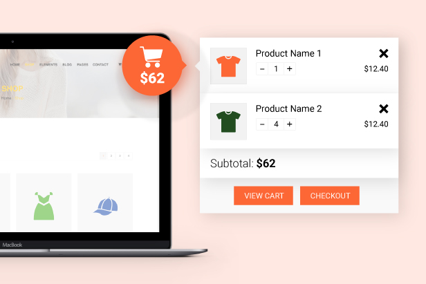 - Dropdown cart: display cart dropdown when customers hover their mouse over the menu cart icon. The dropdown displays information about products, variations, images, quantities, and subtotals.