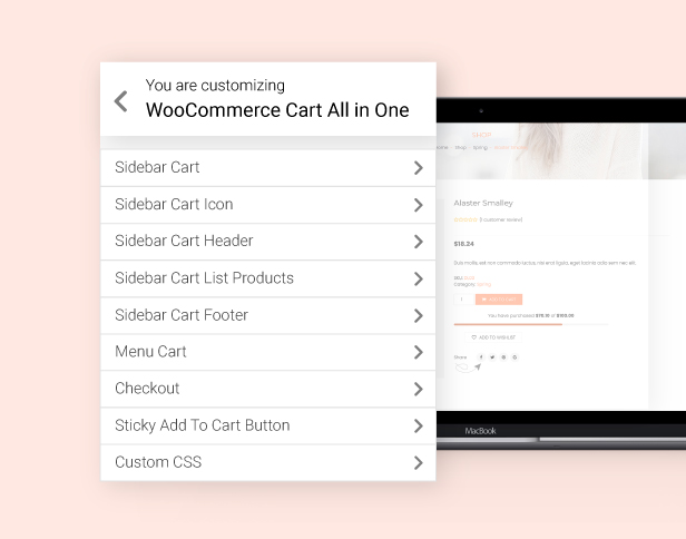 - 2 styles: there are 2 sidebar cart styles full height and pop-up.